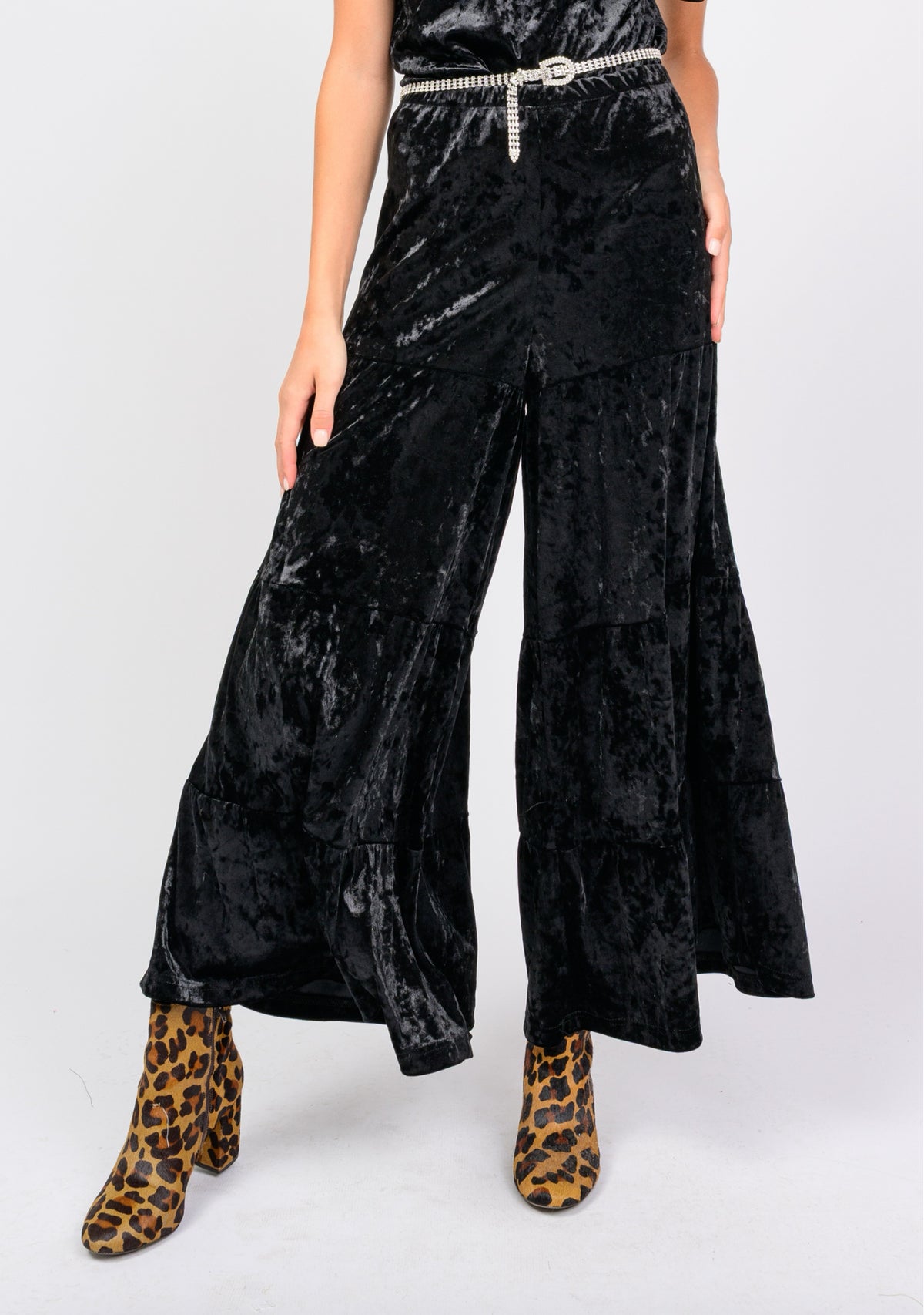 Black Tiered Velvet Pant